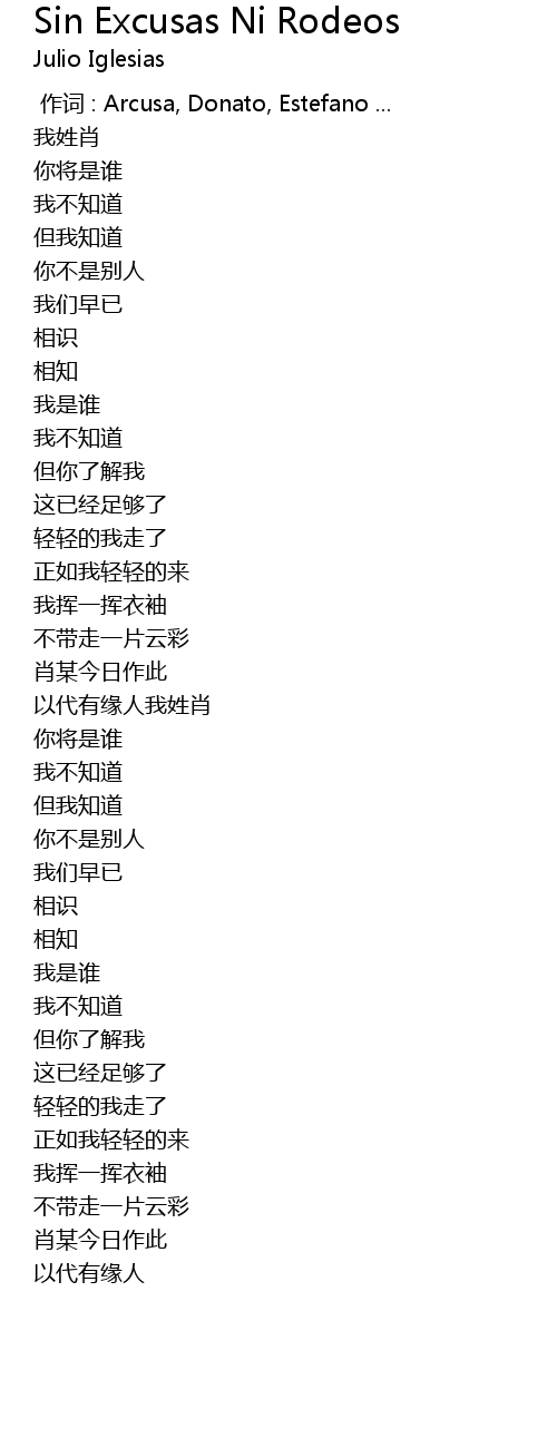 | [00:00.00] | 作词 : Arcusa, Donato, Estefano ... |
