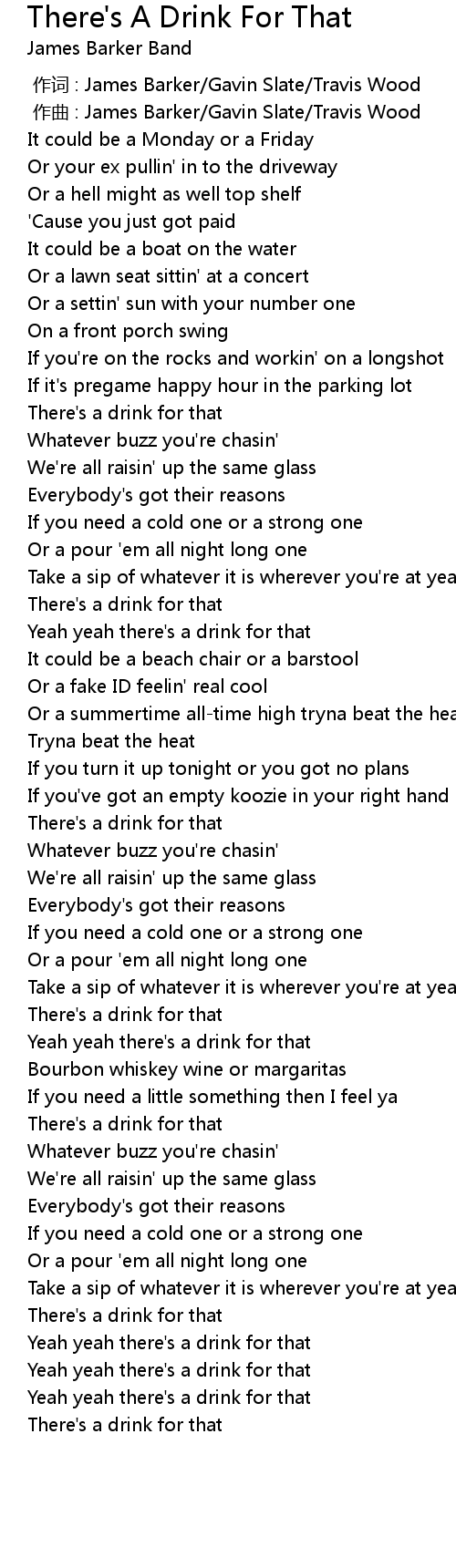 | [02:50.17] | Yeah yeah there's a drink for that |