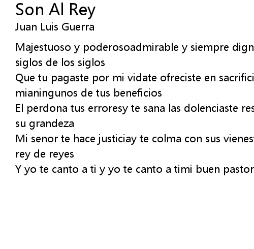 | Mi senor te hace justiciay te colma con sus vieneste rebela sus caminospoderoso rey de reyes | |
