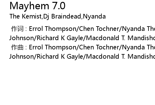 | [00:00.000] | 作曲 : Errol Thompson/Chen Tochner/Nyanda Thorbourne/Tyrello Johnson/Richard K Gayle/Macdonald T. Mandishora |
