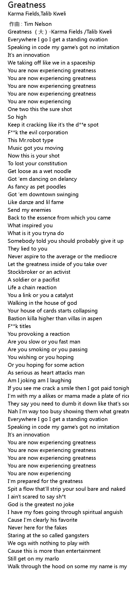 | [00:00.00] | Greatness da Karma Fields Talib Kweli |