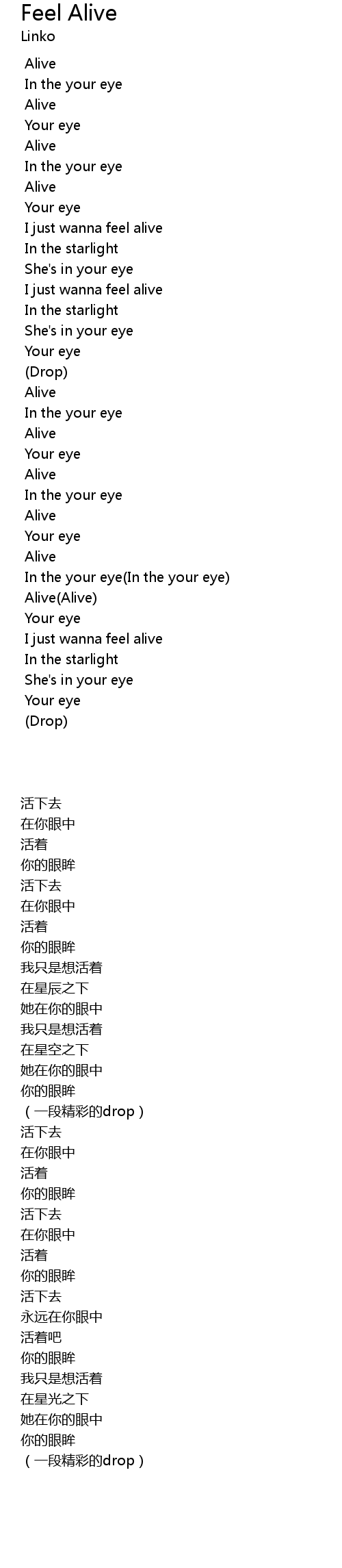 | [00:28.728] | I just wanna feel alive |