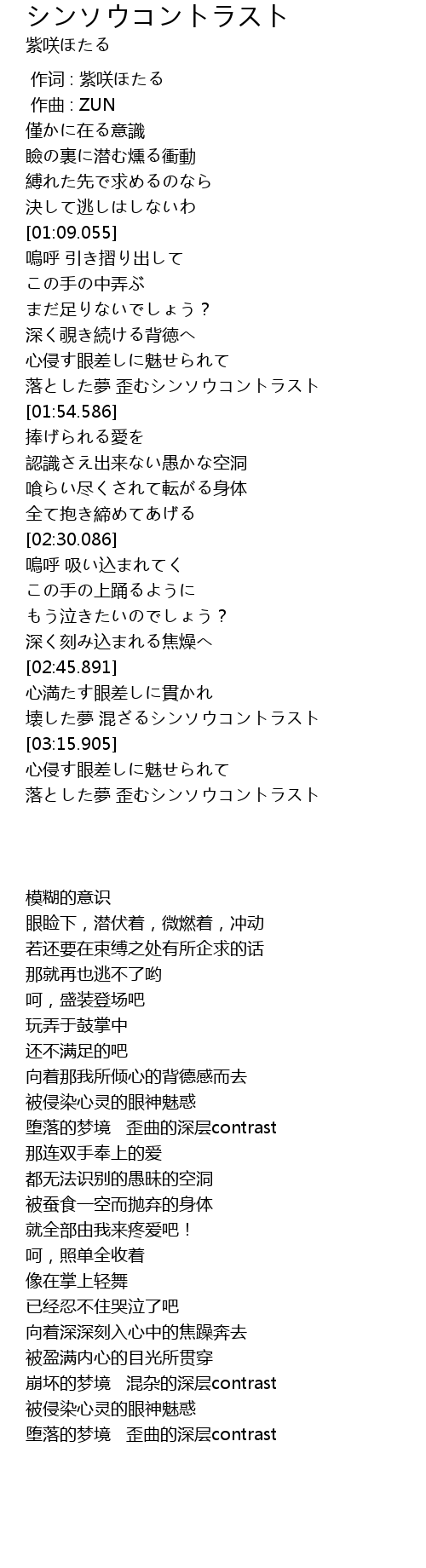 | [02:58.508] | 壊した夢 混ざるシンソウコントラスト |