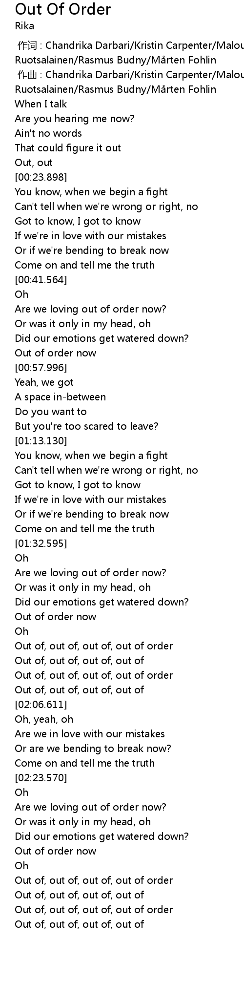 | [01:17.623] | Can' t tell when we' re wrong or right, no |