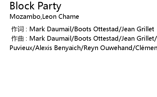 | [00:00.000] | zuò qǔ : Mark Daumail Boots Ottestad Jean Grillet Guillaume Puvieux Alexis Benyaich Reyn Ouwehand Clé ment Bergerot |