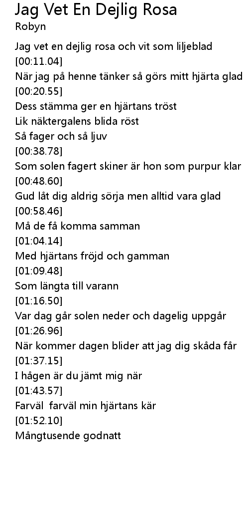 | [00:02.56] | Jag vet en dejlig rosa och vit som liljeblad |