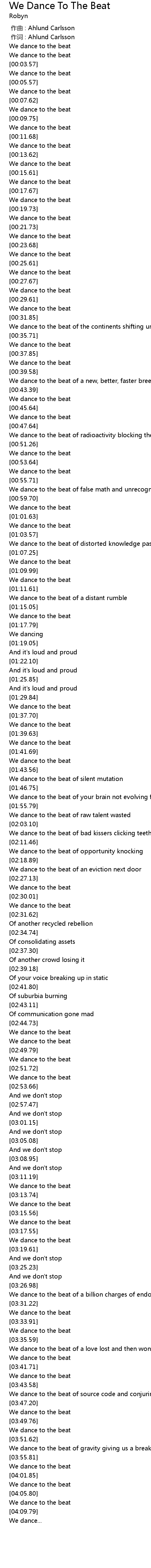 | [03:28.79] | We dance to the beat of a billion charges of endorphin |