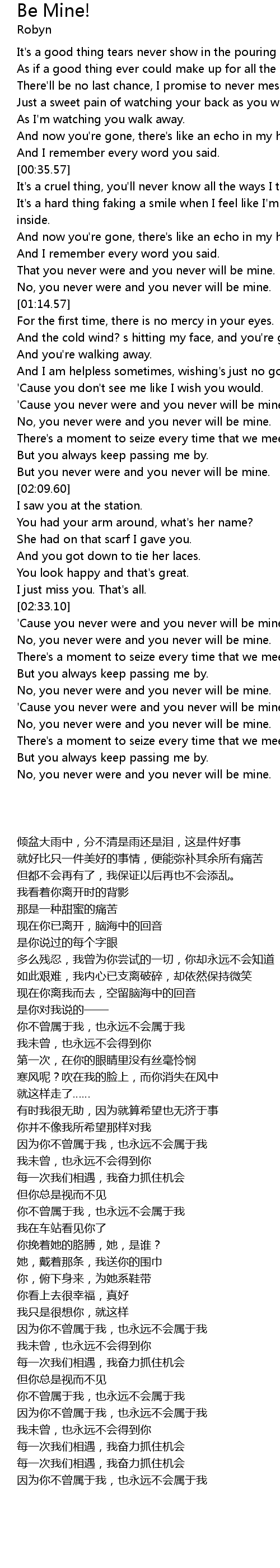 | [02:39.98] | No, you never were and you never will be mine. |