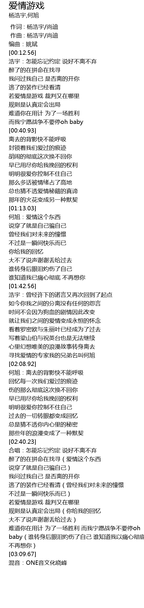 | [03:10.56] | 混音:ONE音文化晓峰 |