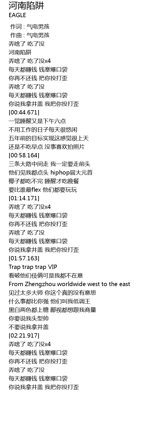 | [01:02.166] | 他们见我都点头 hiphop届大元首 |
