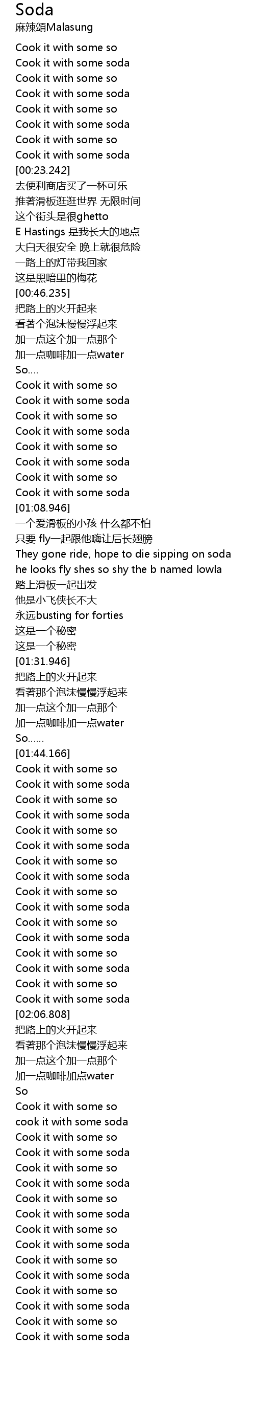| [01:14.995] | They gone ride, hope to die sipping on soda |