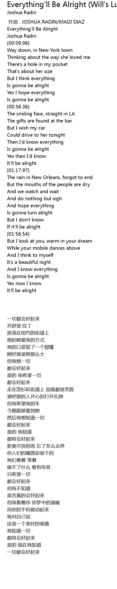 | [00:00.00] | 作曲 : JOSHUA RADIN/MADI DIAZ |
