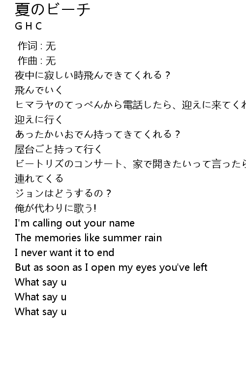| [00:15.110] | ビートリズのコンサート、家で開きたいって言ったら? |