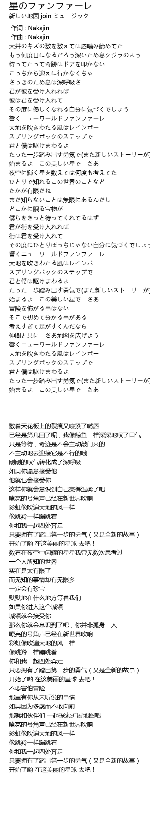 | [02:44.341] | 始まるよ この美しい星で さあ! |