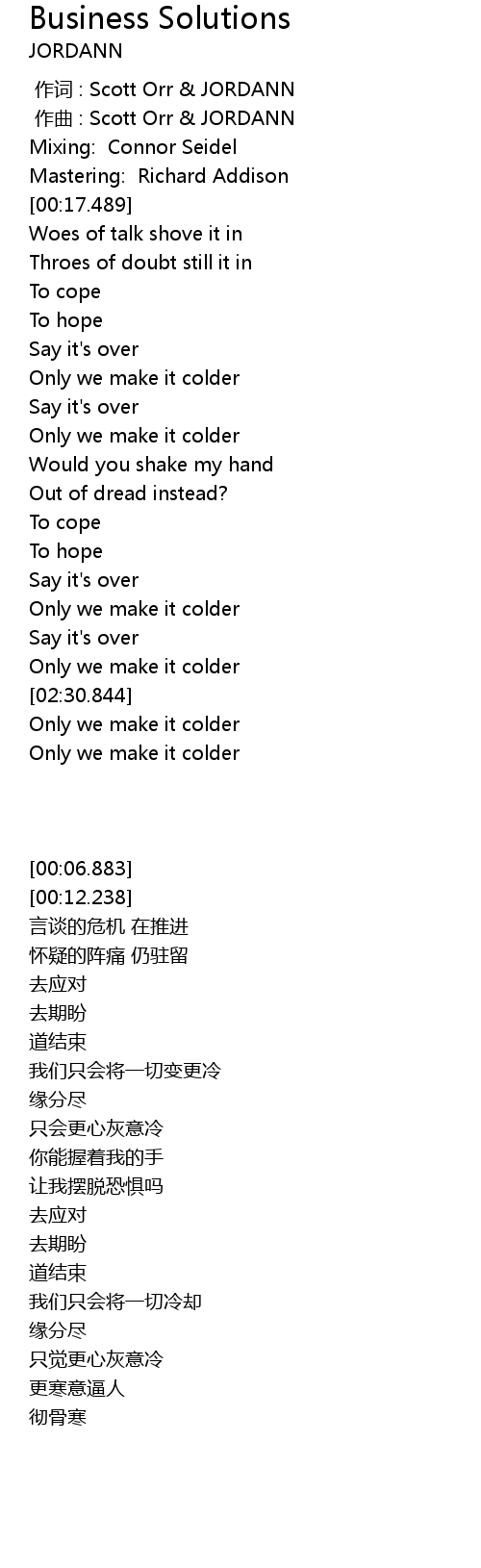 | [00:00.000] | 作词 : Scott Orr & JORDANN |