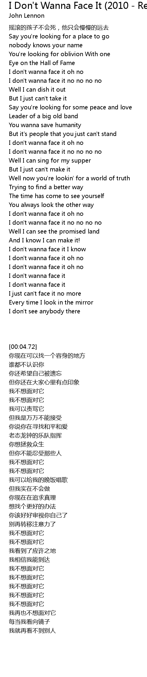 | [00:34.49] | I don't wanna face it no no no no |