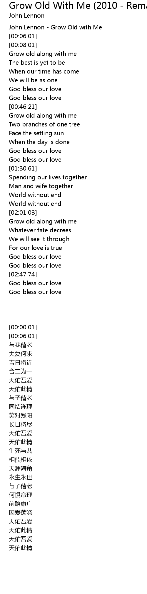 | [00:00.01] | John Lennon - Grow Old with Me |