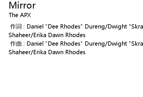 | [00:00.000] | 作曲 : Daniel "Dee Rhodes" Dureng/Dwight "Skrapp" Reynolds/Oli J Shaheer/Erika Dawn Rhodes |