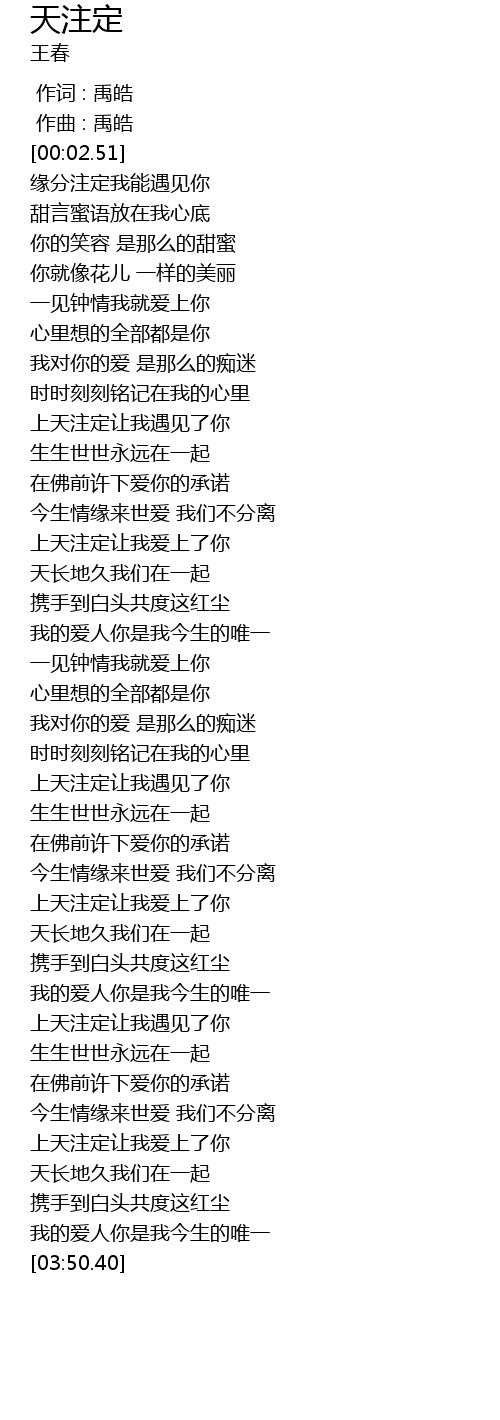 | [02:41.34] | 今生情缘来世爱 我们不分离 |