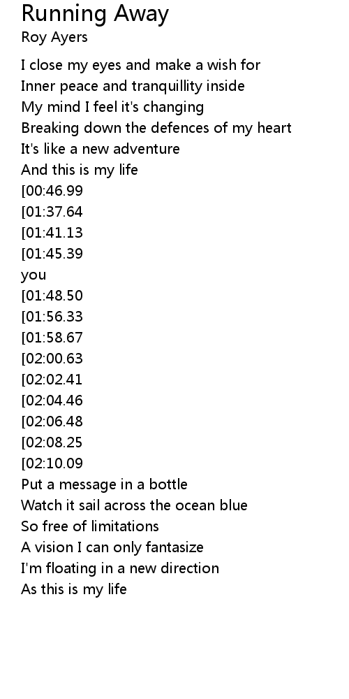 | [00:43.41][01:45.39][01:54.91][02:32.85][02:40.55][03:03.57] | [Running away from you |