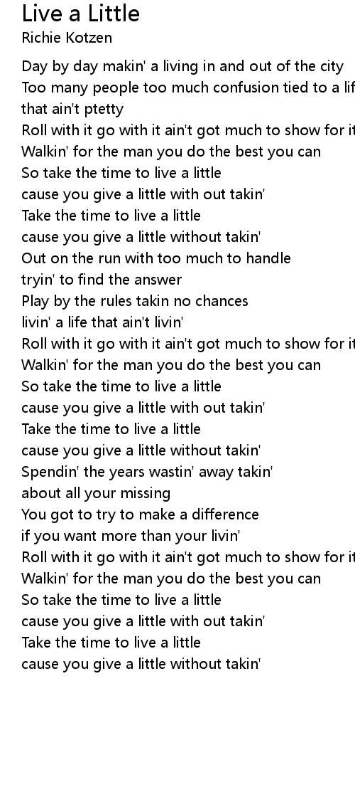 So take the time to live a little |