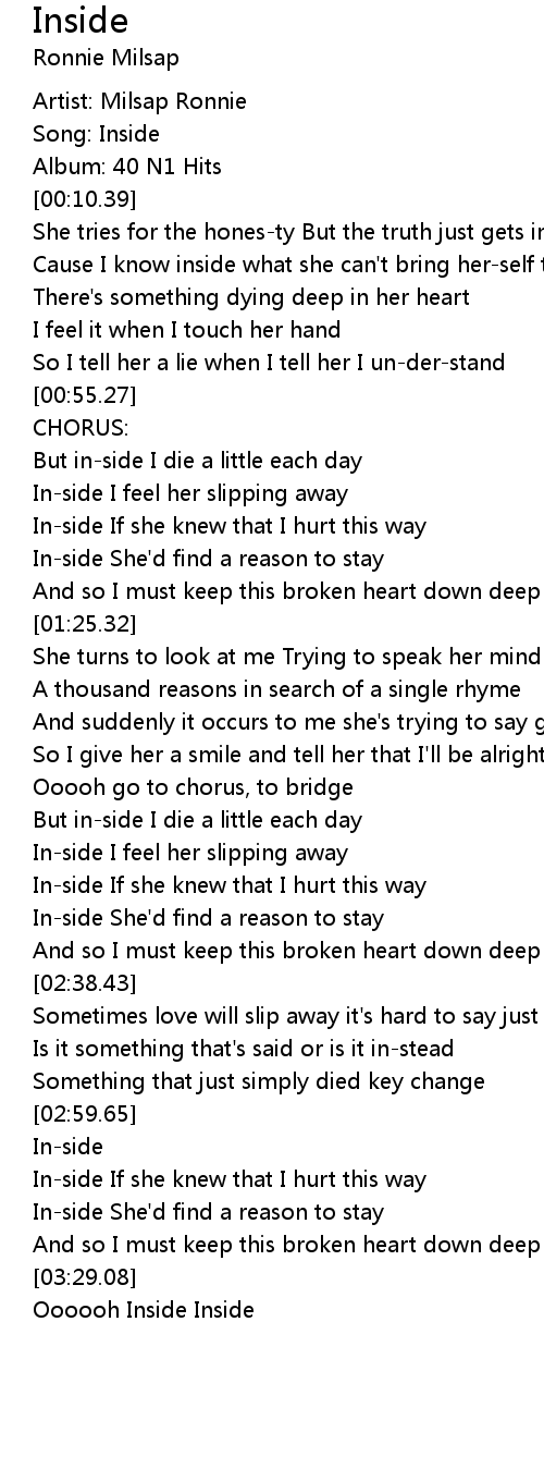 | [03:12.05] | Inside If she knew that I hurt this way |