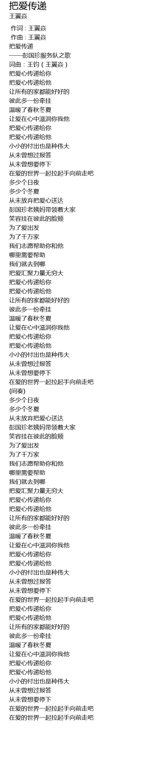 | [04:34.41] | ba ai xin chuan di gei ta |