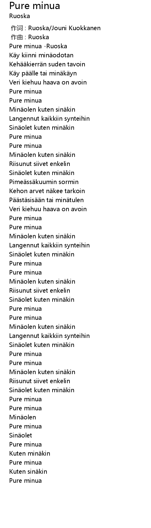 | [00:00.000] | 作词 : Ruoska/Jouni Kuokkanen |