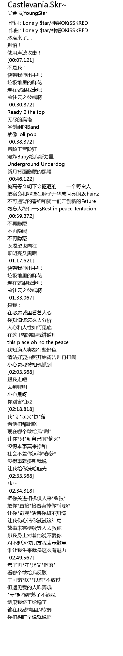 | [00:01.000] | 作曲 : Lonely $tar/神絕OKiSSKRED |