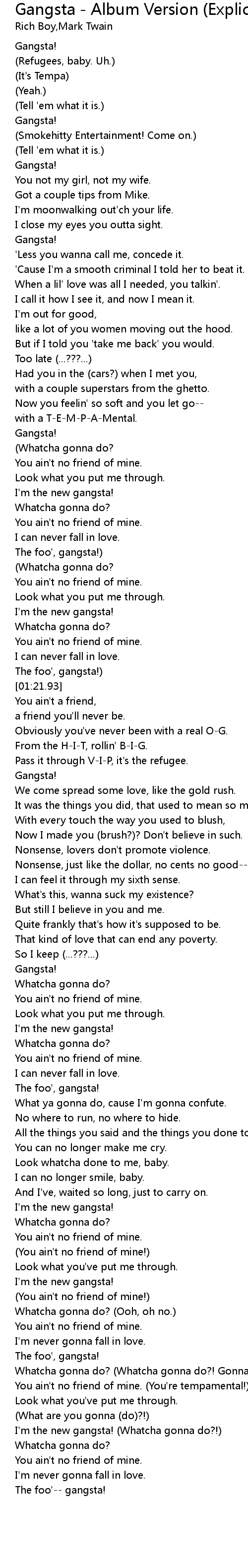 | [00:19.67] | Gangsta! |