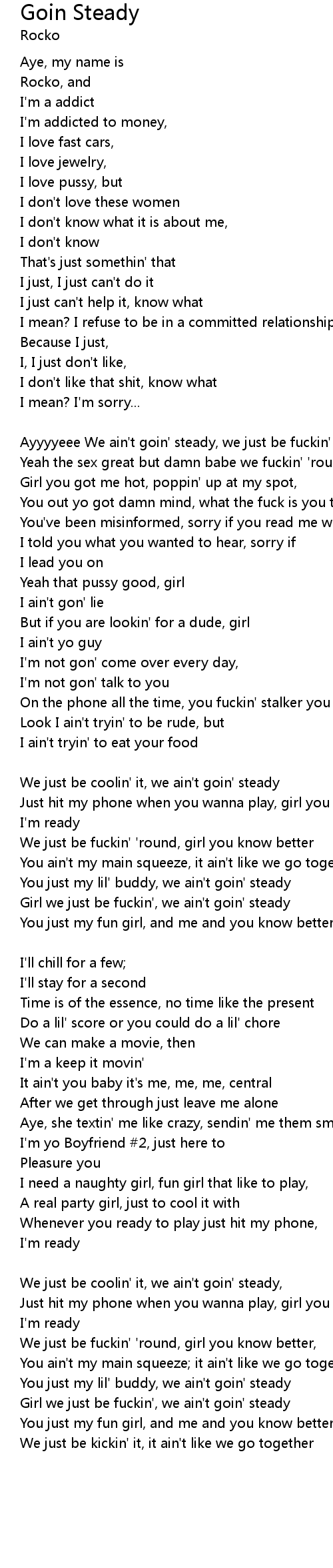 Ayyyyeee We ain't goin' steady, we just be fuckin' 'round |