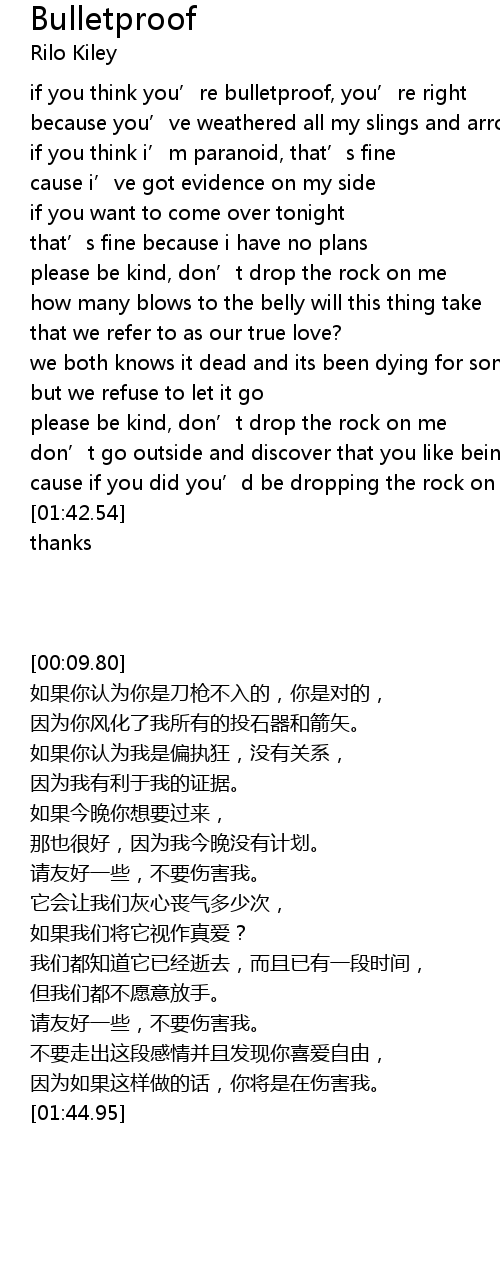| [00:10.90] | if you think you' re bulletproof, you' re right |