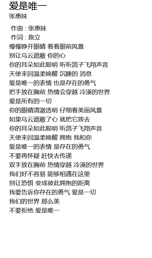 | [03:41.0] | 不要拒绝 爱是唯一 |