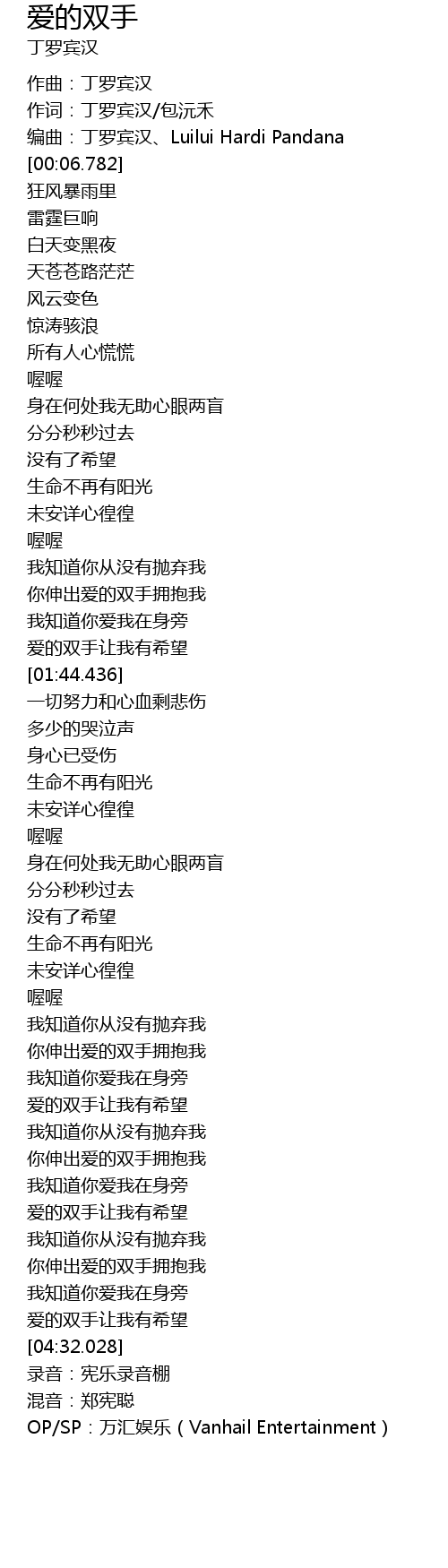 | [00:03.066] | 编曲:丁罗宾汉、Luilui Hardi Pandana |