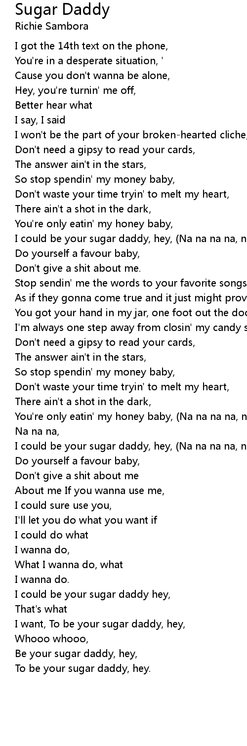 I could be your sugar daddy hey, |