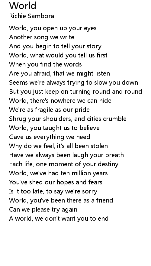 World, you taught us to believe |