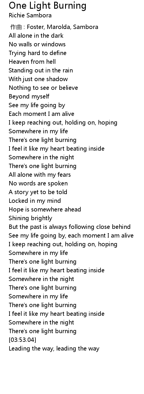 | [03:48.98] | There's one light burning |