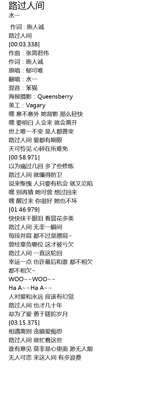 | [01:52.470] | 路过人间 无非一瞬间 |