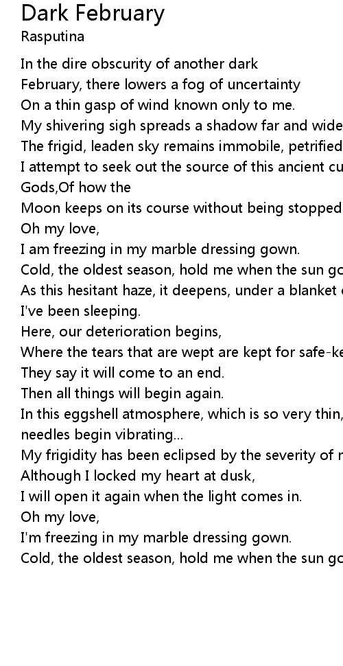 Cold, the oldest season, hold me when the sun goes down. |
