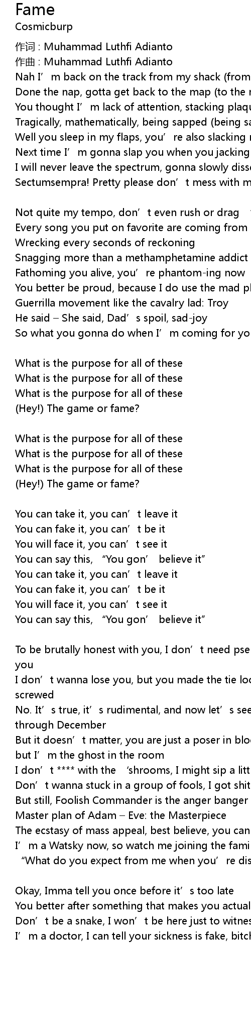 | Song | Fame |