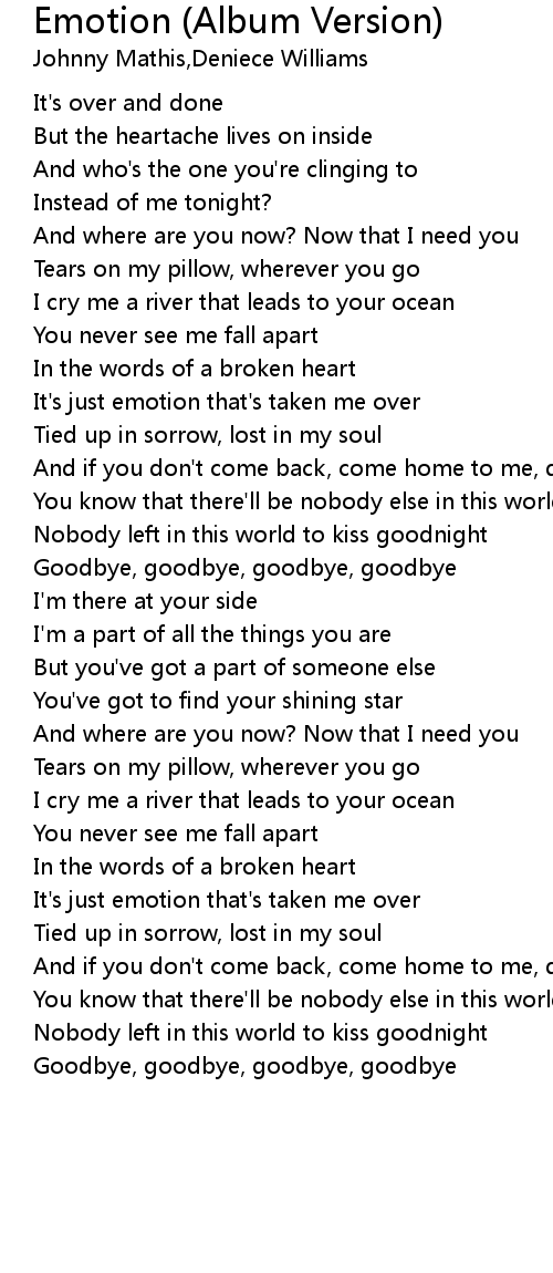 It's just emotion that's taken me over |