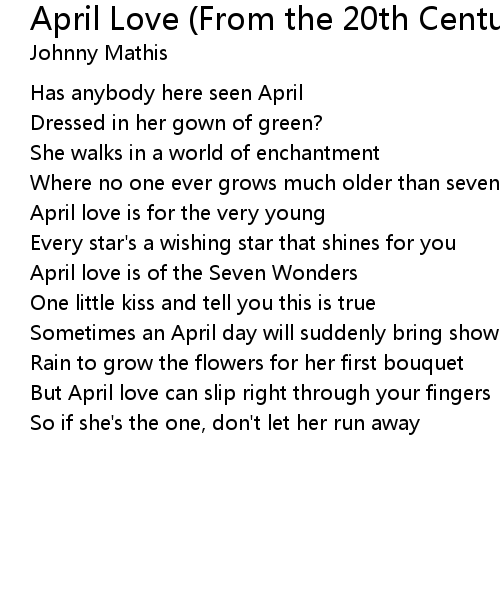 | Song | April Love (From the 20th Century-Fox Film, "April Love") |