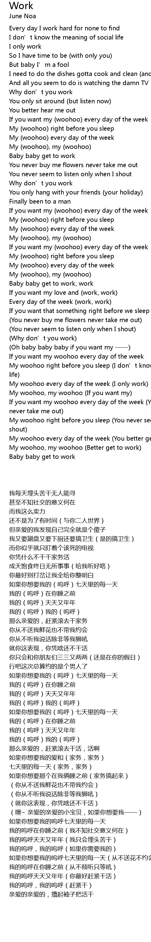 | [02:23.42] | My woohoo every day of the week (I only work) |