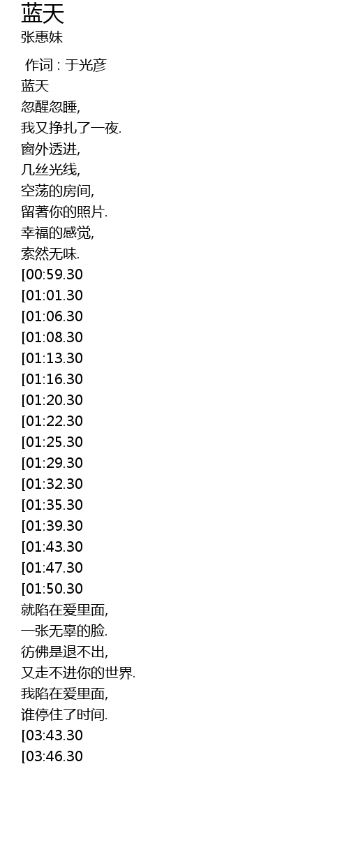 | [04:00.30][03:46.30] | 有一整片蓝天. |