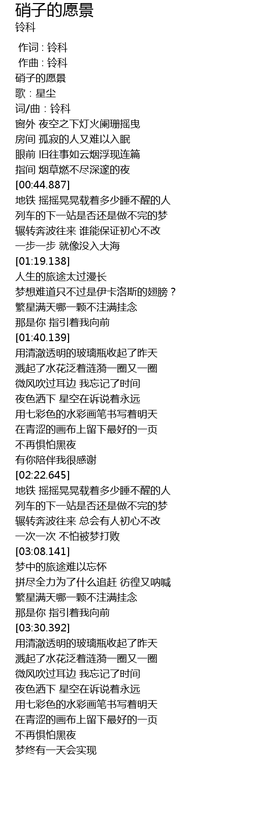| [00:11.636] | 歌:星尘 |