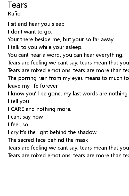 The porring rain from my eyes means to much to keep inside. sit and watch you leave my life forever. |