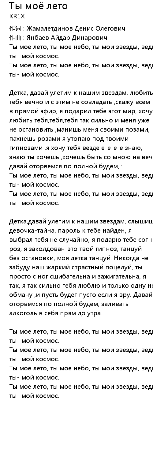 Ты мое лето, ты мое небо, ты мои звезды, ведь ты- мой космос. |