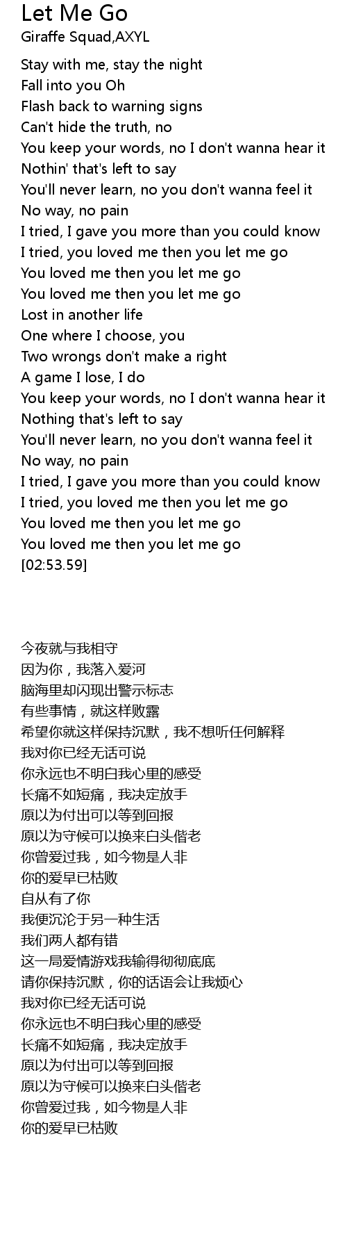 | [02:49.65] | You loved me then you let me go |