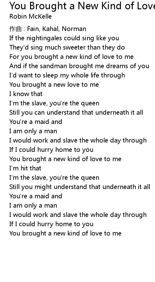 | You brought a new kind of love to me | |
