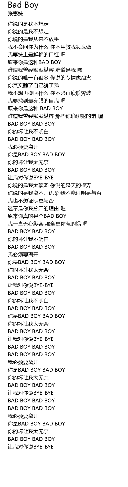 | [01:22.17] | nǐ shì BAD BOY BAD BOY |